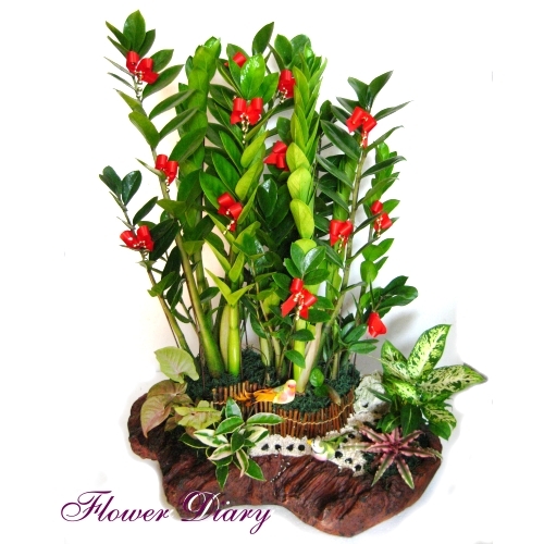 金錢樹,外型像圓葉蘇鐵,葉片有光澤,葉形流線有如一把彎刀,有辟邪之意; 單葉橢圓就像錢幣一樣,所以有「金錢樹」之稱。 耐陰性極佳,生長較緩慢。可放於室內或半遮蔭場所,非常好照顧! 需注要避免日光直射,春秋兩季可二週澆水一次, 冬季溫度過低時,水量更要減少,適度維持土壤的濕潤即可。