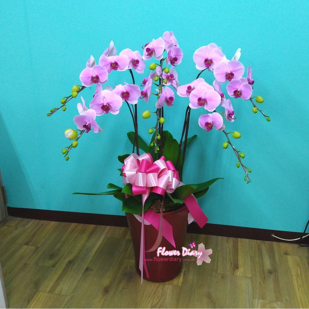 花材:當季A級以上大輪粉色花蝴蝶蘭花6梗 贈造景小植物